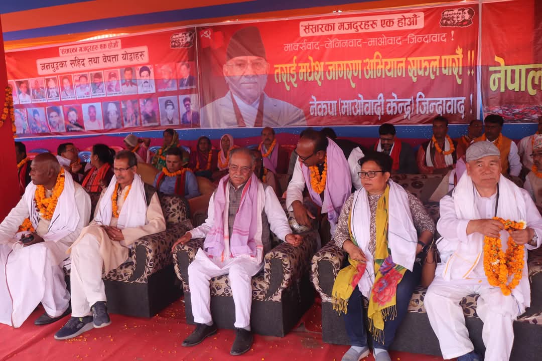 सर्लाही, फागुन २३ गते । अहिलेको बेथितीको अन्त्यका लागि सबै तह र तप्काका जनता आन्दोलित हुनुपर्ने नेकपा माओवादी केन्द्रका अध्यक्ष पुष्पकमल दाहाल प्रचण्डले सर्लाहीकाे मलंगवामा आयाेजित तराई–मधेश जागरण अभियान कार्यक्रमलाई सम्बाेधन गर्दै बताउनुभयाे