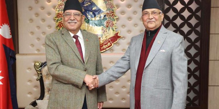 ४ फागुन, काठमाडौं । प्रधानमन्त्री पुष्पकमल दाहाल प्रचण्ड र नेकपा एमालेका अध्यक्ष केपी शर्मा ओलीबीच भेटवार्ता भएको छ ।