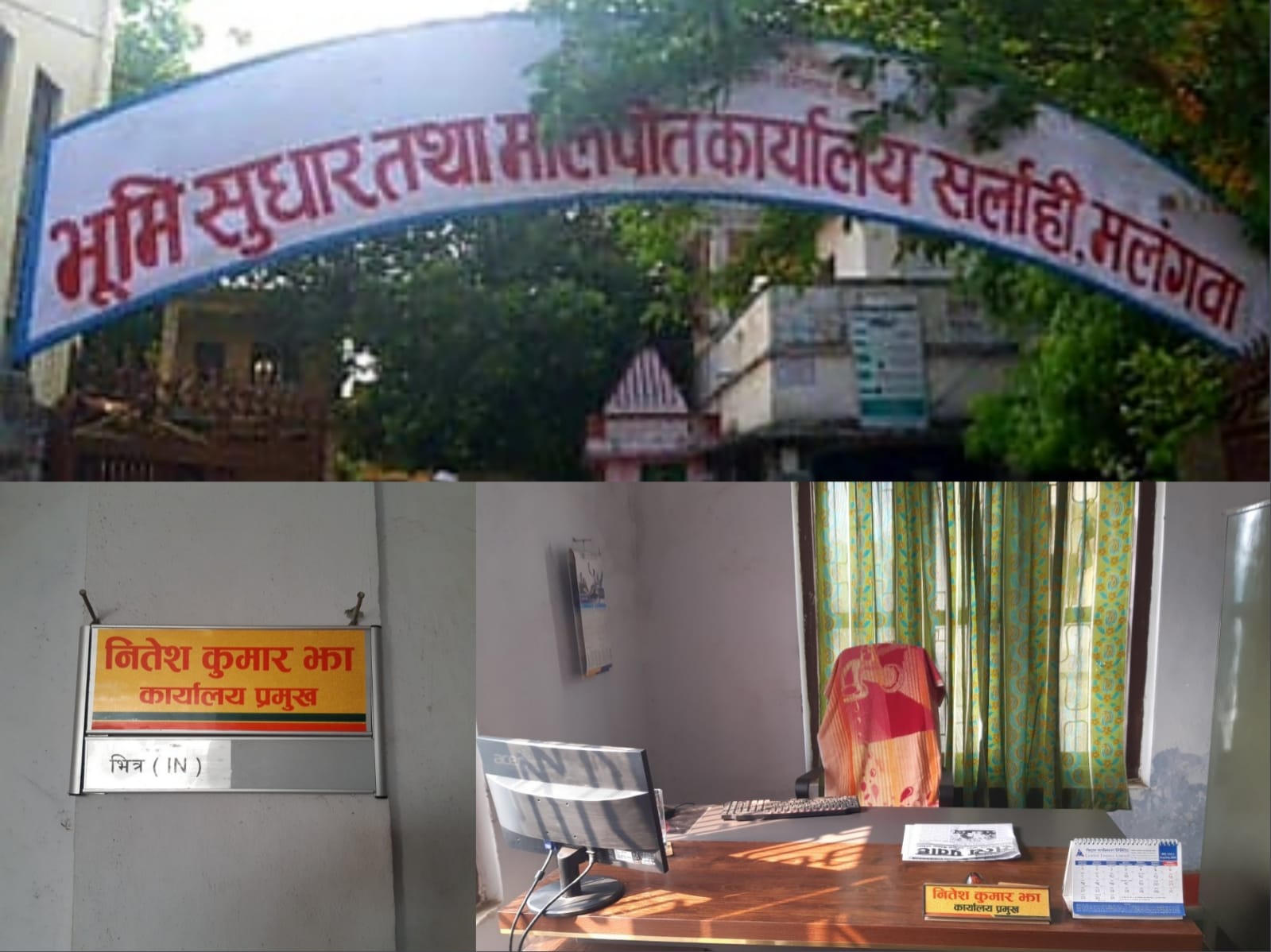 सर्लाही, माघ १ गते । भूमिसुधार तथा मालपोत कार्यालय मलंगवा सर्लाहीका कार्यालय प्रमुख नितेश कुमार झामाथि नियमित कार्यालय समयको उल्लंघन, सेवाग्राहीबाट असुल गरिएको अवैध रकम कर्मचारीसँग बाँडफाँड गर्ने तथा आर्थिक रूपमा कमजोर सेवाग्राहीलाई योजनाबद्ध रूपमा झुलाउनेजस्ता गम्भीर आरोप सार्वजनिक भएका छन् ।