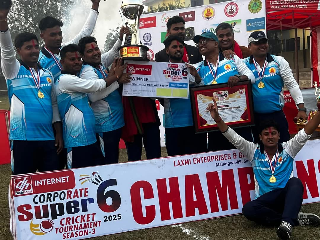 सर्लाहीको मलंगवामा सम्पन्न डिस होम करपोरेट सुपर सिक्स क्रिकेट टुर्नामेन्ट सिजन ३ को उपाधि राजश्री सेभिङ्ग कोअपरेटिभ सोसाइटी लिमिटेडले जितेको छ।
