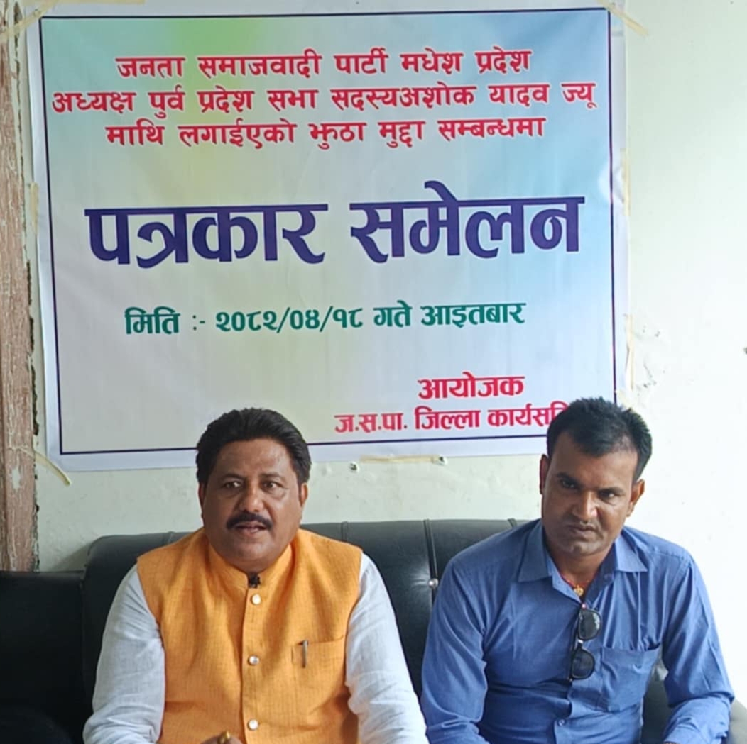 जनता समाजवादी पार्टी (जसपा) , मधेश प्रदेशका अध्यक्ष तथा पूर्व प्रदेश सभा सदस्य अशोक यादवमाथि लगाइएको झुठा र राजनीतिक पूर्वाग्राही मुद्दाको विरोधमा आज सर्लाहीमा पत्रकार सम्मेलनकाे आयोजना गरिएको छ।